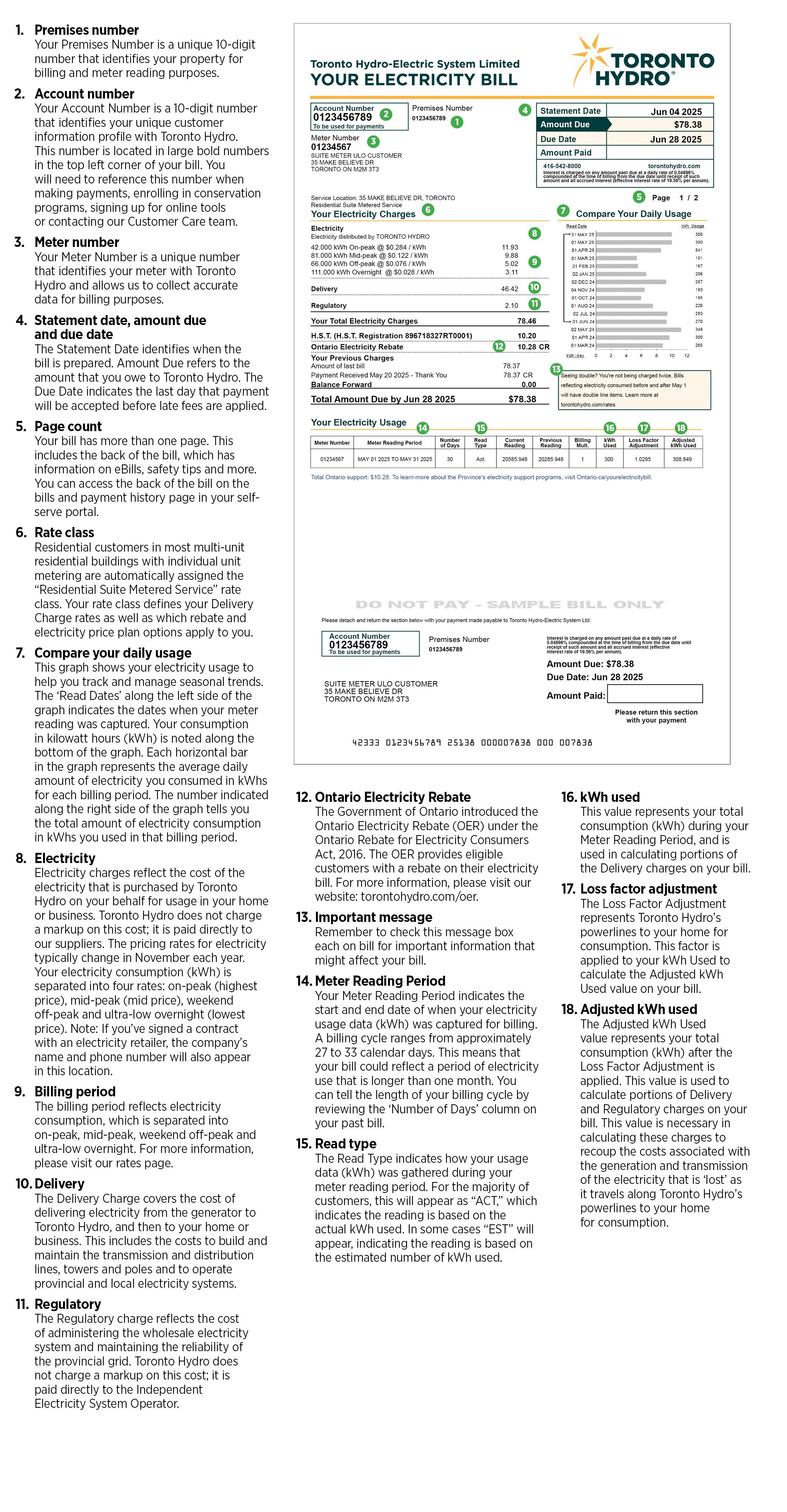 - The Statement Date identifies when the bill is prepared. Amount Due refers to the amount that you owe to Toronto Hydro. The Due Date indicates the last day that payment will be accepted before late fees are applied.