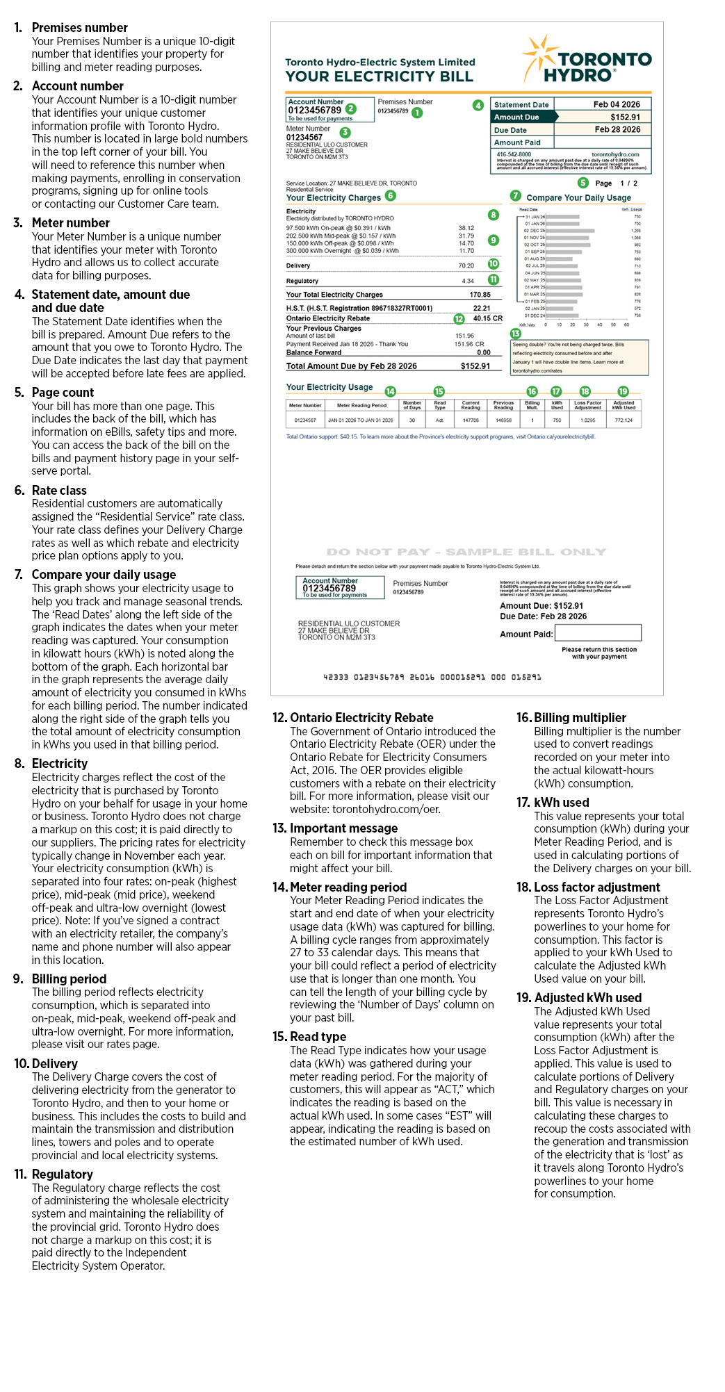 - The Statement Date identifies when the bill is prepared. Amount Due refers to the amount that you owe to Toronto Hydro. The Due Date indicates the last day that payment will be accepted before late fees are applied.