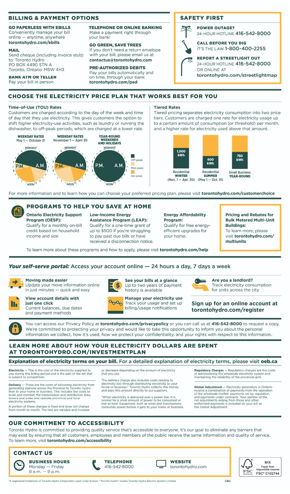The back of your bill includes important information, including billing and payment options, electrical safety tips and more.